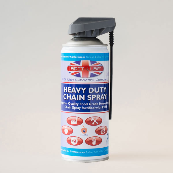 Heavy Duty Chain Spray is a Premium Quality, Highly Adhesive, Water Proof, Wear Resistant Chain Lubricant designed for the Food Manufacturing Sector.